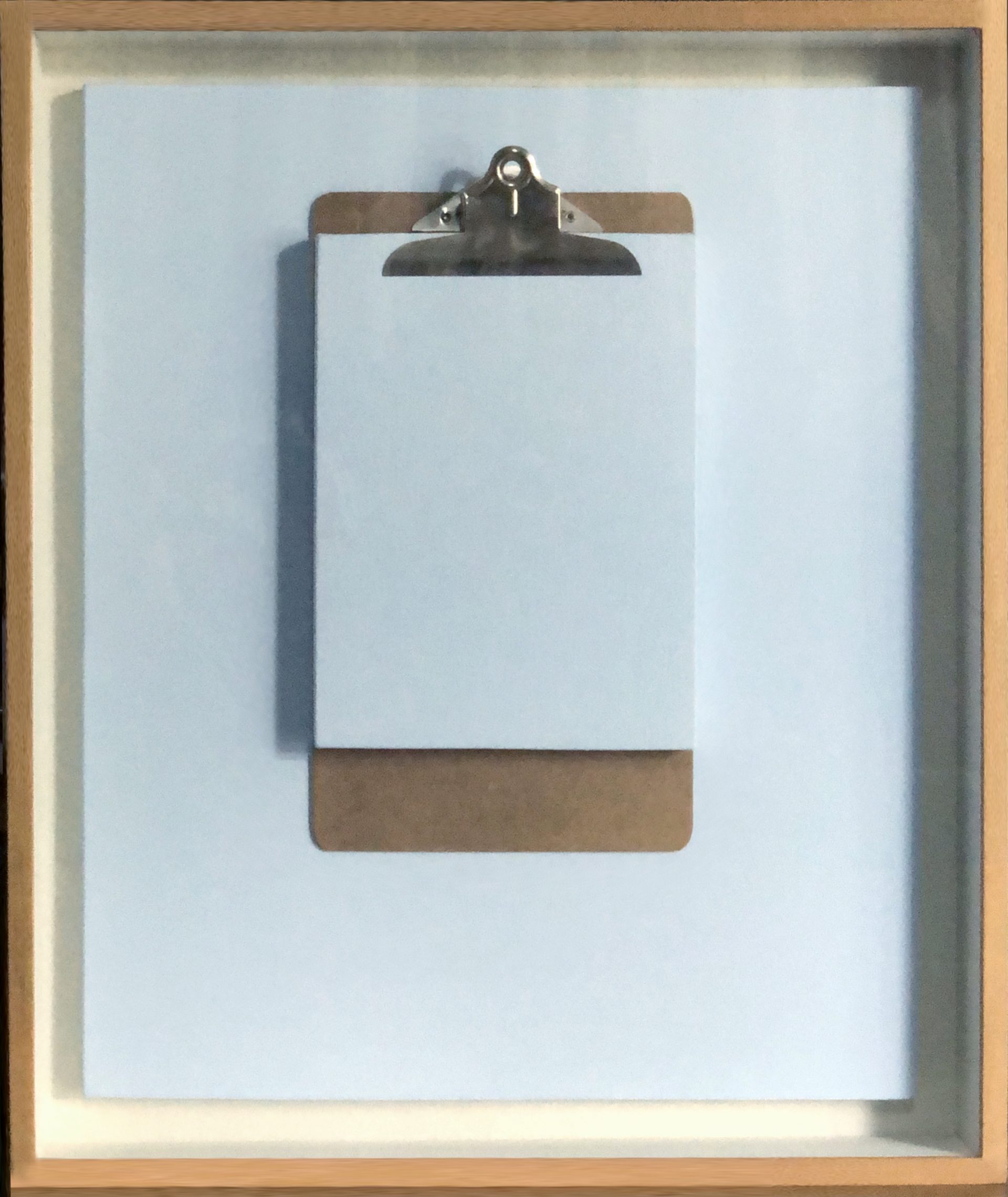 Widely acknowledged as the founding figure of conceptual art in the Philippines, Chabet adopted conceptual strategies as a counterpoint to the rigid structures brought about by modernist movements in the 1960s. His search for meaning – not just in abstraction, but also in the value of commonplace objects in everyday life – transformed materials into both object as well as metaphor for the vagrancies of contemporary life. Pale Blue Memo (2011) combines the structure of a clipboard with a canvas, painted in a seemingly continuous solid block of colour. Pale blue, a colour that Chabet has used repeatedly throughout his practice, may allude to the hue of the ocean, but it is also said to be the colour that is scattered most. Playing with the boundaries between painting, object and sculpture, Pale Blue Memo raises questions about what it is to be an object in and of itself.