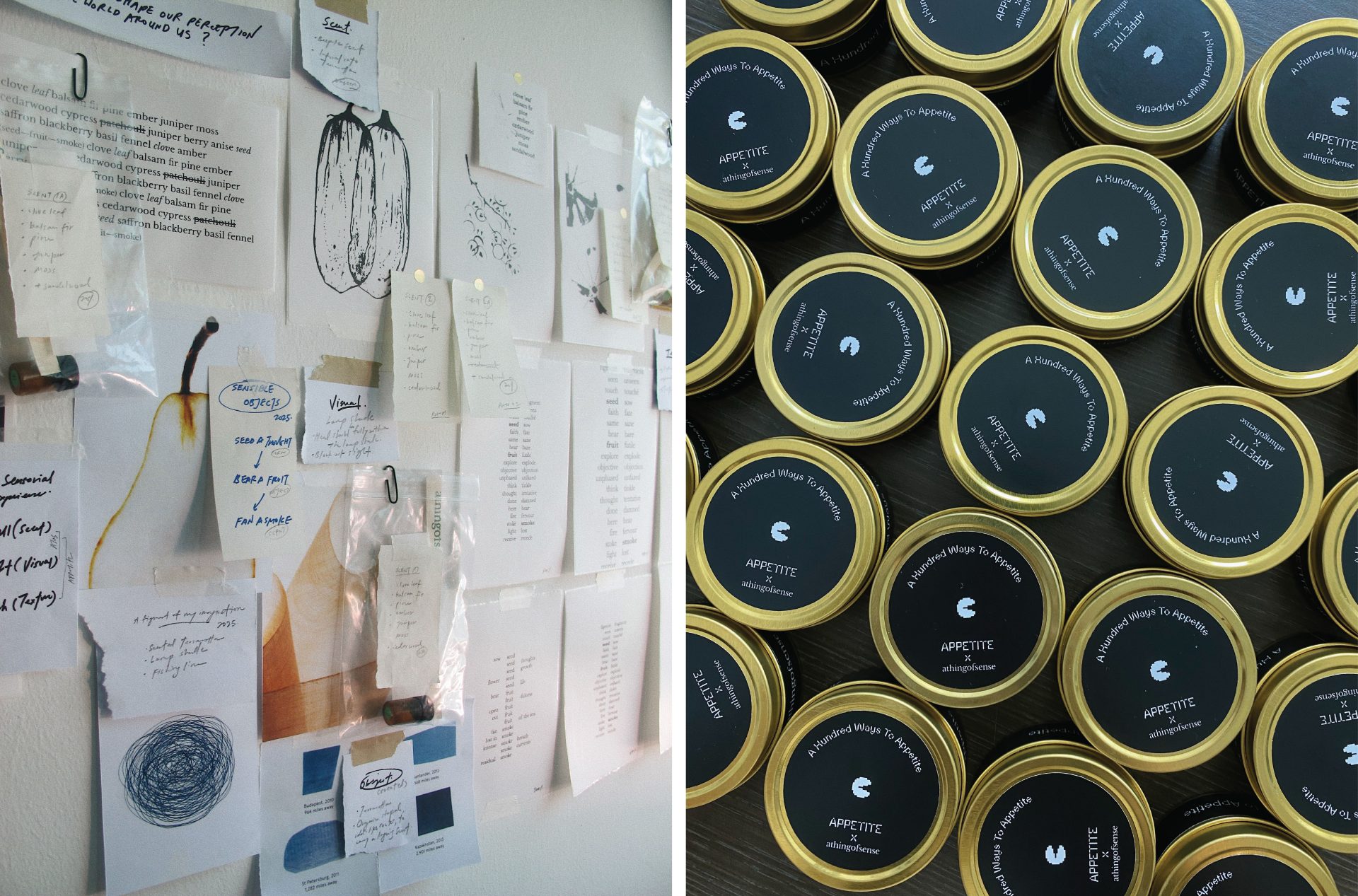 “The elements of ‘seed’, ‘fruit’, and ‘smoke’ were my guiding thought-starters, adding on to my first impression of Appetite—as a space, and as a scent—reimagined to stir senses. Created in response to Appetite’s space, culture, and their way of honouring ingredients, the fragrance was first produced as a scent mist infused into terracotta, now taking form as a candle. A way of celebrating Appetite; a quiet ode to growth, place and season.