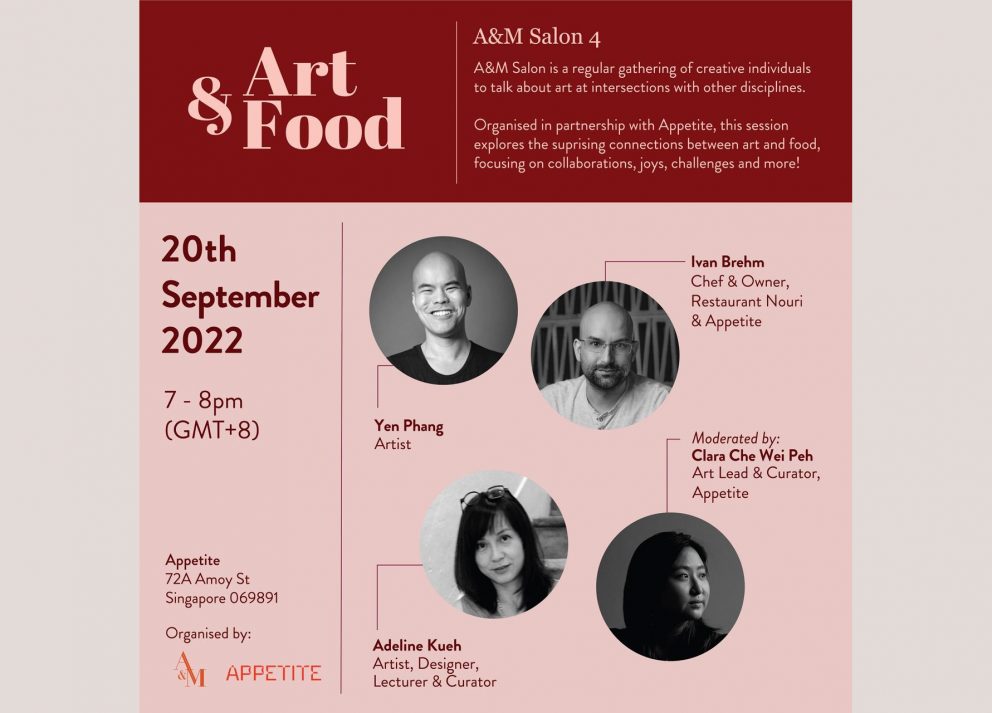 Organised in partnership with Art & Market (A&M), A& M Salon: Art & Food explores the surprising connections between art and food, focusing on collaborations, joys, challenges and more! Moderated by our Art Lead Clara Peh, this Salon will feature our very own Chef Ivan Brehm in conversation with artists Adeline Kueh and Yen Phang.