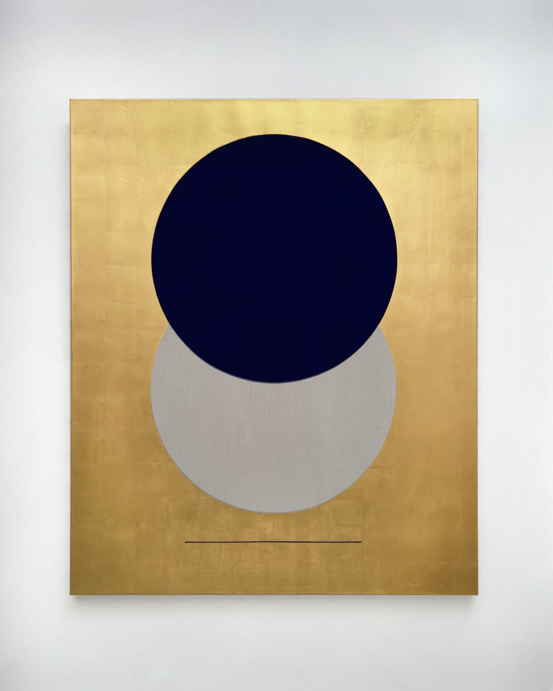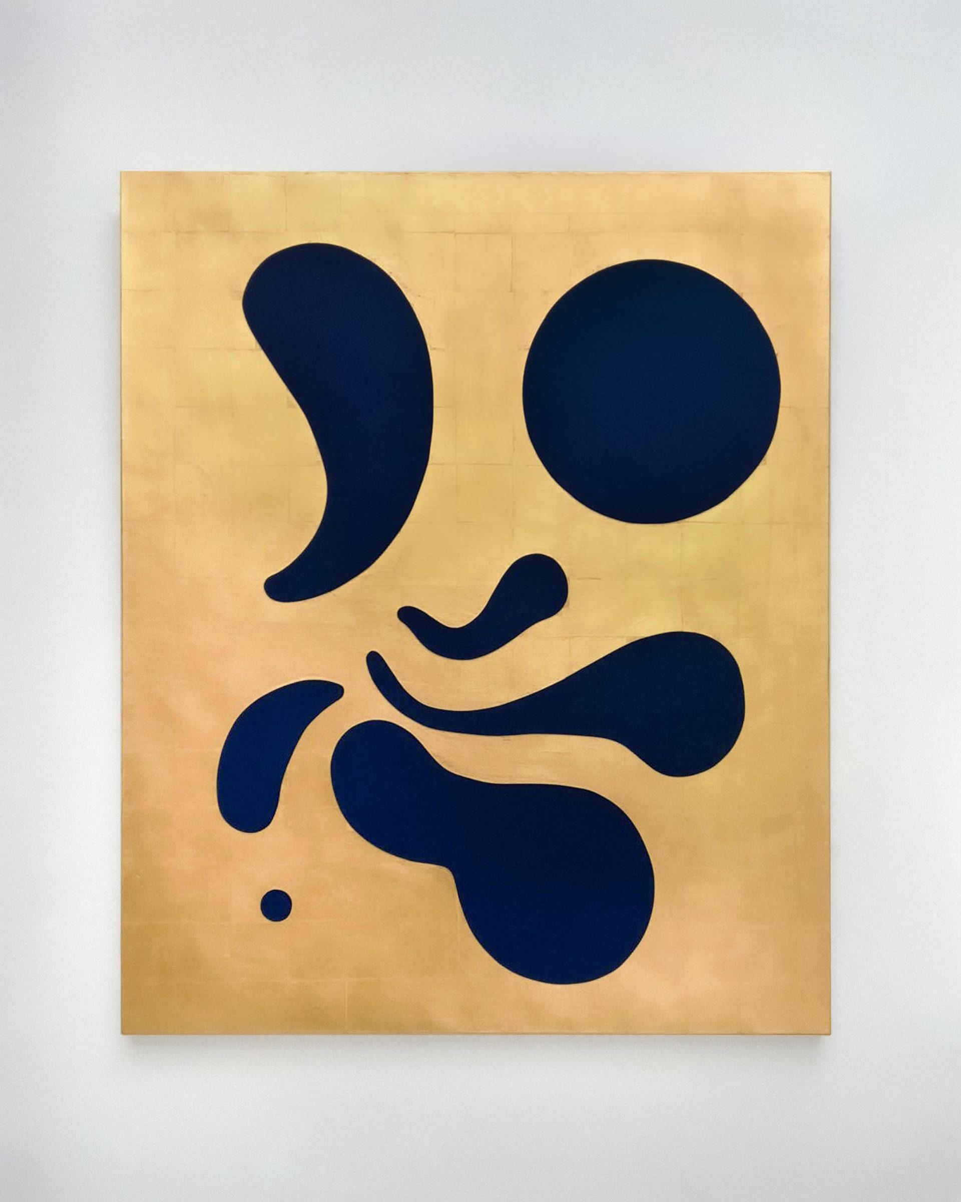 Created from the painstaking application of gold leaf, the luminous works on show evoke the resplendent, life-giving energy of the sun, a long tradition of gilding spiritual icons to symbolize their divinity, as well as wealth, vanity, and the extractive practices of colonialism. Across these expansive fields of gold, circles suggest the movement of celestial bodies, cycles of time, or the symbolism of meditative practices, while the abstracted, dancing forms hark back to forgotten myths and rituals, or the gentle swaying of tropical foliage near Tantra’s family home in Bali.