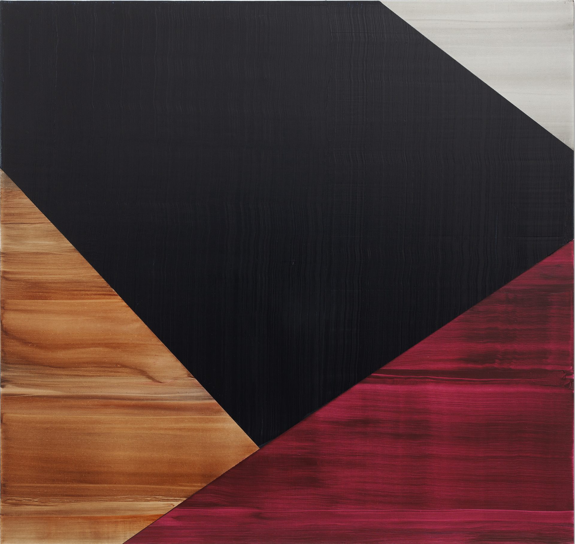 Violet Red 2 and Green and Payne’s Grey 2 are from Mazal’s “Violeta + Bhutan” works, in which the artist unites two of his most prominent series to conduct an expansive study on colour. Distinct from most of his practice, “Violeta” grounds itself solely in the intangible; its conceptual basis lies with music, emotion, and the contemplative state that can be generated by pure color. Meanwhile, “Bhutan” is borne out of Mazal’s journey to the country’s mountainous landscape, and his fascination with the vitality of the region’s distinctive prayer flags. Colour is paramount to the intent of each flag; each one has its place in a canon of symbolism meant to aid in spiritual thought and action. With Violet Red 2, Mazal fluently brings together two modes of color study into a single canvas, resulting in a warm expanse of pigment, both hazy and sharply defined. Green and Payne’s Grey 2 evokes the organic shades of the natural world, with subtle striations and differing degrees of saturation materialized into an image that resembles tree rings or rock strata just as easily as it does the textures of woven fabric. Mazal’s abstract method serves to clarify seemingly diametric aspects of experience—introspective exploration and embodied encounter—and show they are not so dissimilar after all.