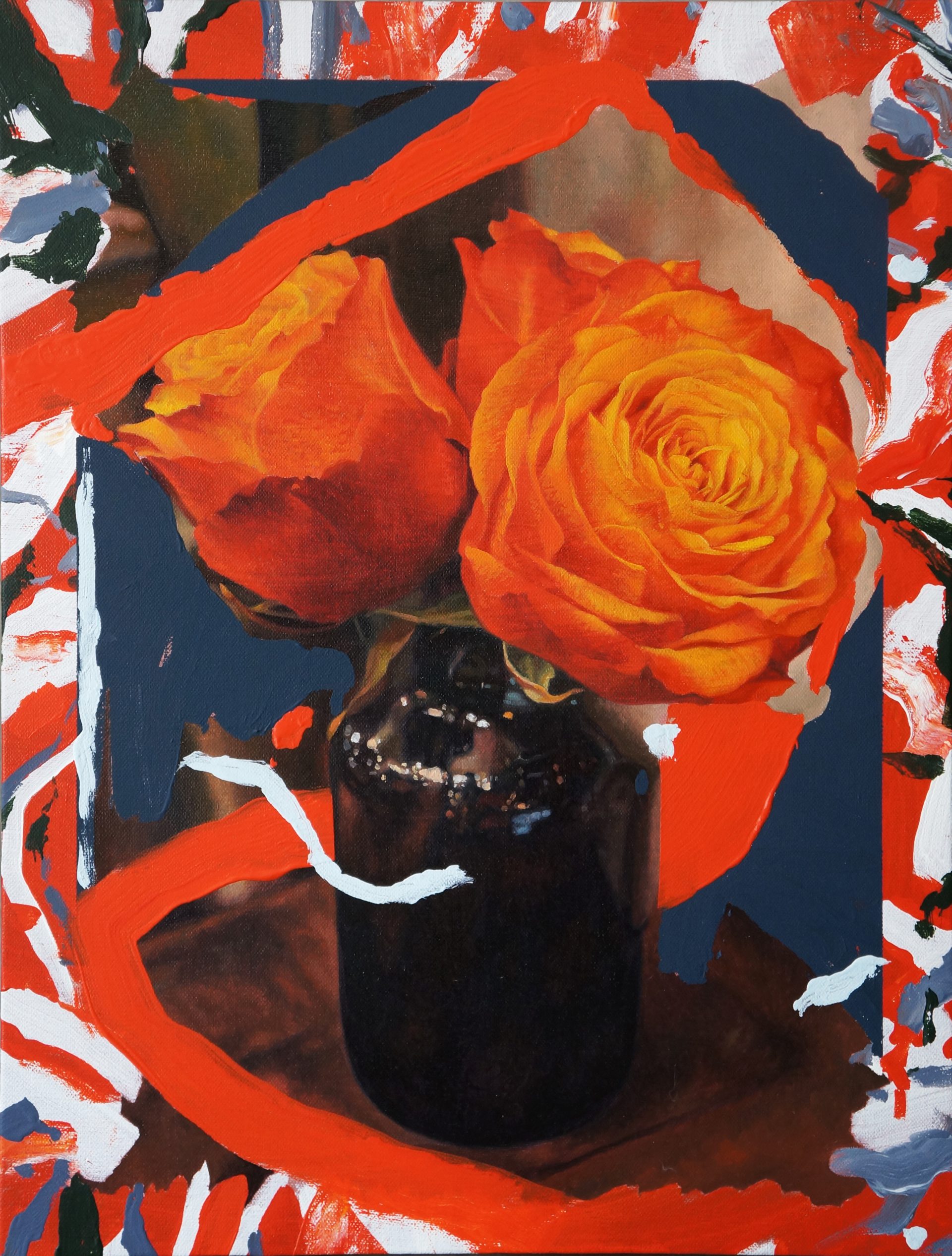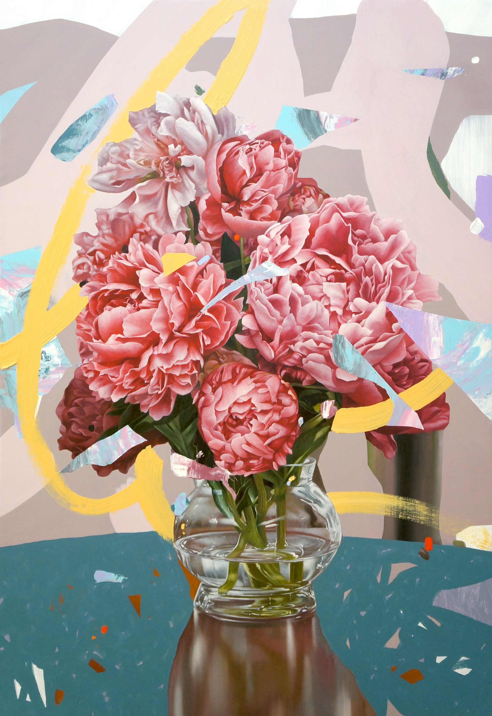 The genre of still life painting has always tackled the illusionistic representation and the dedicated study of the everyday object. In Chayanin Kwangkaew’s paintings, the artist observes objects from his mundane surroundings as flashes of interruptions float past. In Continue No. 1 (2019), the surface of the floral still life is disrupted by energetic bursts of colour which flatten the subject and background. For the artist, these are interventions caused by interrupted thoughts within a shifting landscape of rapid communication and technology. At the same time, they speak to the transience and instability of memory – sometimes vivid, sometimes fading.