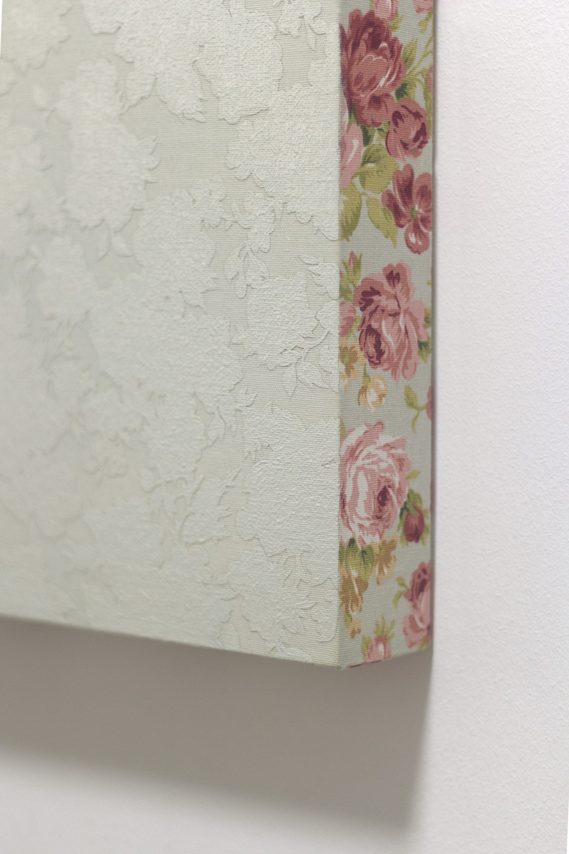In Deflower Painting 11 and 12 (2022), a seemingly empty canvas unveils, on closer inspection, margins of floral patterns reminiscent of interior wallpaper and domestic textiles. The surface reveals itself not to be blank at all, but a painting in which the artist has meticulously matched the base colour of the fabric and painted over the pattern. Acting like a reverse camouflage, the paintings behave as objects that are difficult to place. Prompting an unexpected encounter, Deflower Painting subtly enlivens visual sensibilities that have become weighed down by convention and daily routine.