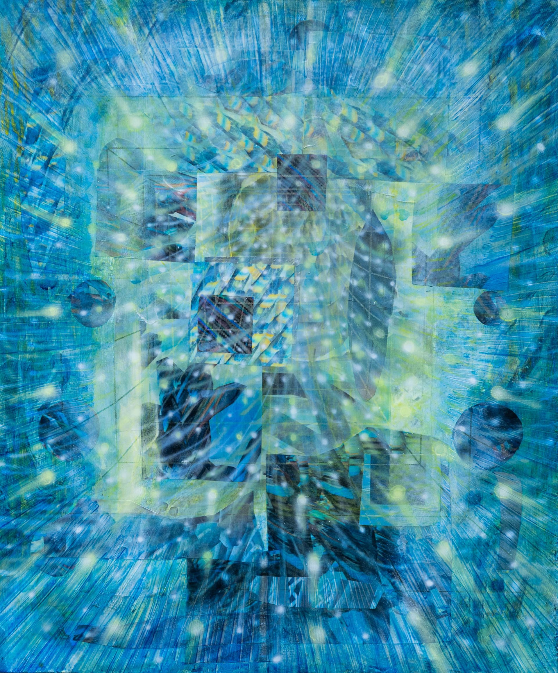 Ivan David Ng brings together painting, collage and generative technology, creating cosmic imagery that explores ancestry and time travel. A recent move to America prompted a deep searching into his Singaporean Hakka identity. Transplanted from an environment where he belonged to the ethnic majority to one where he had to contemplate his position as an alien guest, Ng drew parallels between the etymology of the Hakka ethnic group – the term ‘Hakka’ means ‘guest people’ – as well as the idea of asteroids and comets as ‘guest stars’ – the name given to these transient celestial events in ancient Chinese astronomy.